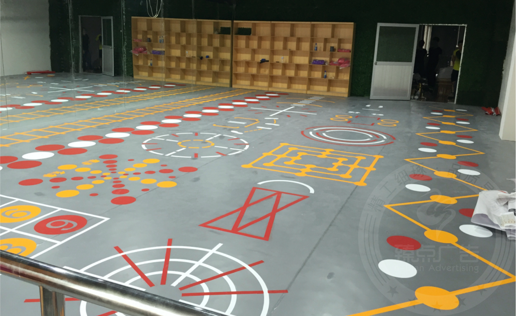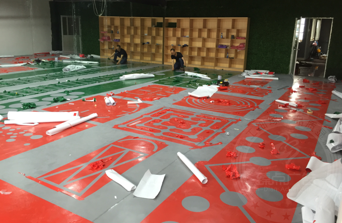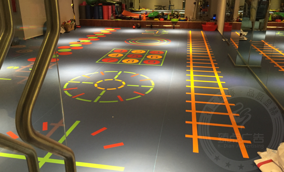 防城港众神健身俱乐部门头广告招牌运动地胶及健身标线图案